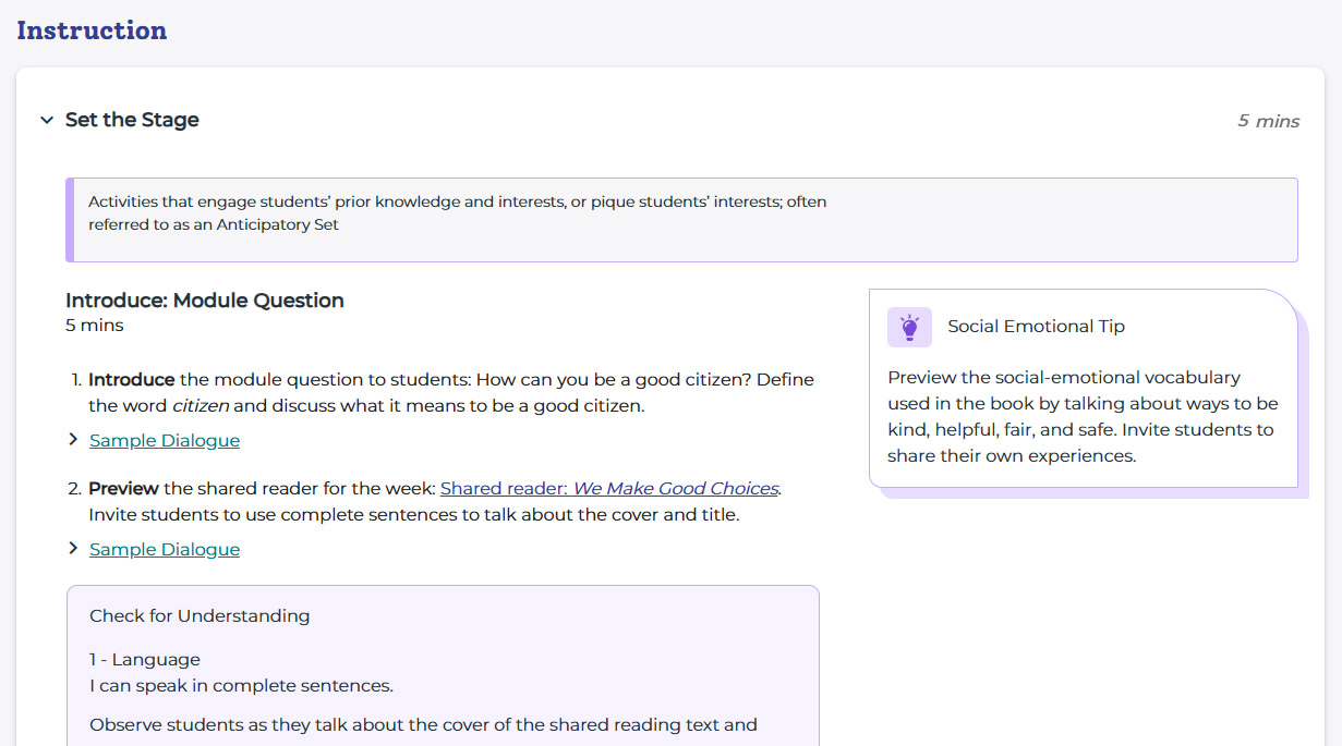 The platform gives teachers explicit, systematic instruction tools alongside embedded professional development, designed to reduce planning burden. Classroom reports automatically surface recommended resources based on student assessment performance, and the platform aligns with major core curricula. Iterative user testing with teachers throughout development ensured the experience reflected how educators actually plan and deliver instruction.