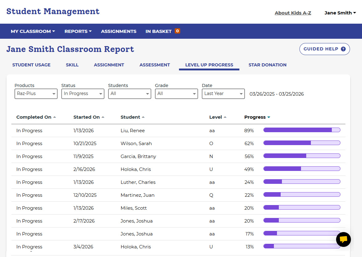 As the Learning A-Z product portfolio expanded into more student-facing offerings, the need for a unified student destination was rushing toward us. I conceived of Kids A-Z in 2014 as a single portal where any student could access every product their teacher owned. I led the design and build of the entire platform, student-facing and teacher-facing, guiding its evolution for over a decade. What started with 4 million students grew to 14 million. Ongoing user testing across age groups and grade levels drove continuous iteration.